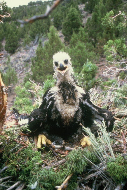 Golden eagle chick in nest