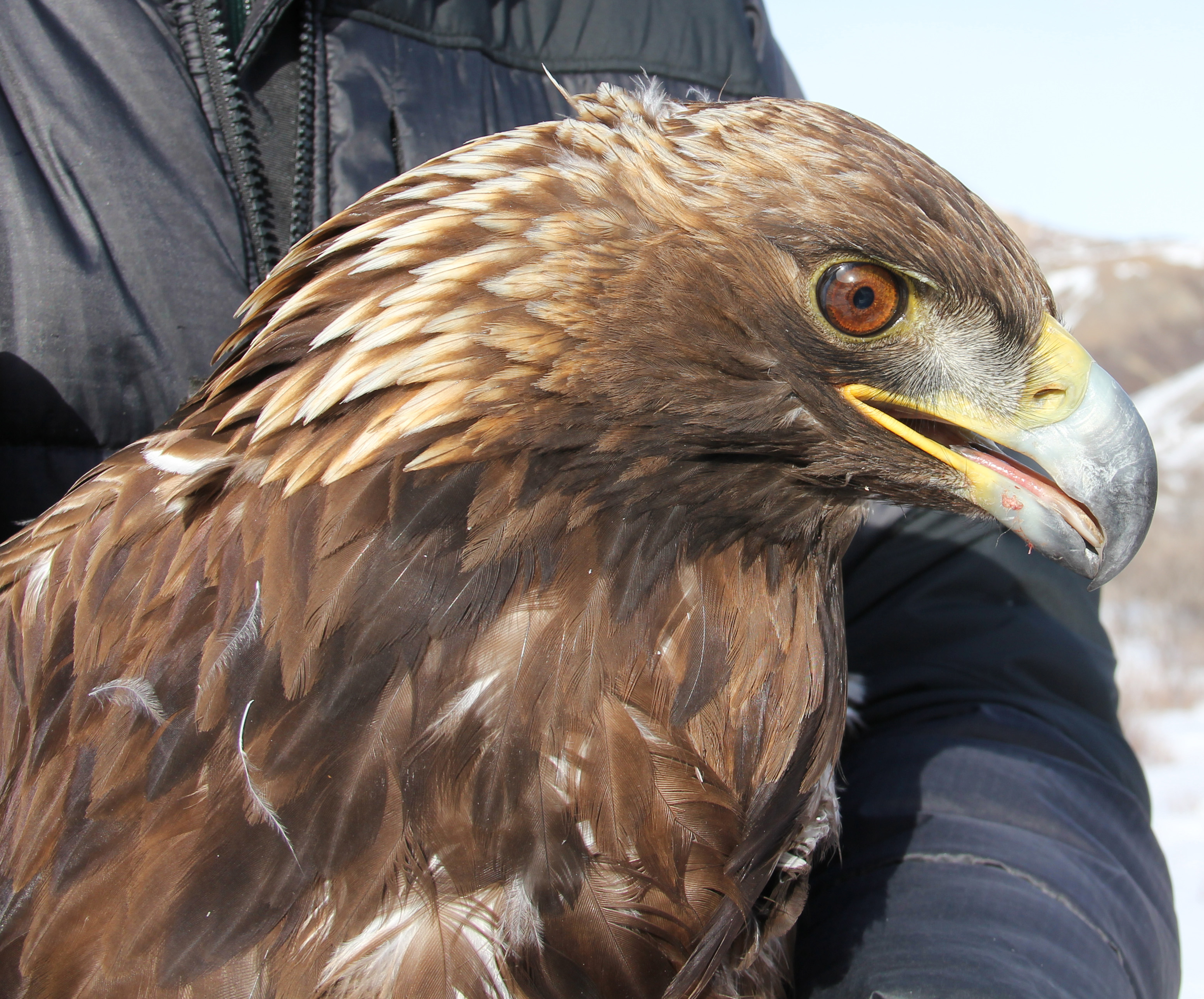 Golden eagle recently fitted with transmitter to track movements during annual cycle.