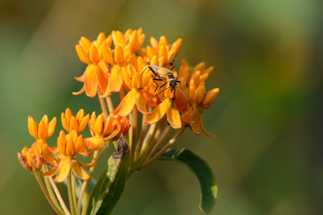 A goldenrod soldier beetle on butterfly milkweed.