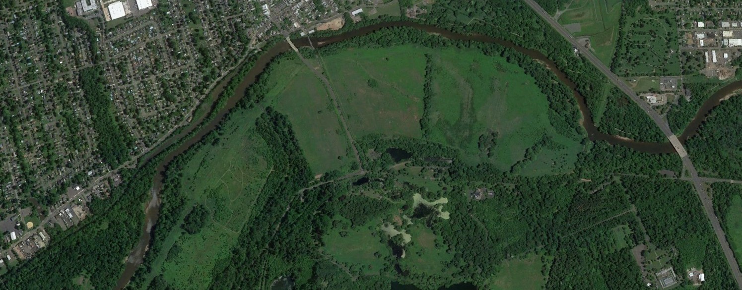 Aerial image of Duke Farms restoration site along the Raritan River.