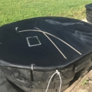 These tanks and covers at Edenton National Fish Hatchery protect young gopher frog tadpoles until they transform into frogs. The small rectangle floating in the water inside the tank is an artificial lily pad.