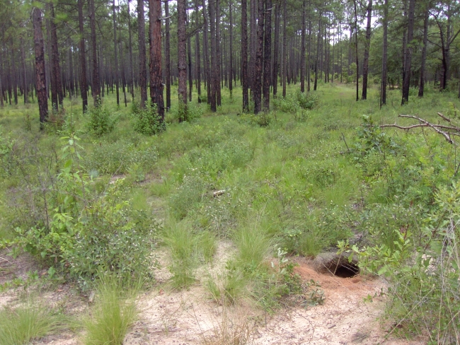 Gopher tortoise; Gopherus polyphemus; long-leaf pine habitat and community; prescribed fire; fire-dependent species; Pinus palustris; Georgia; Coasts Plain Physiographic Province; sandhill habitat; Reptiles