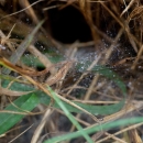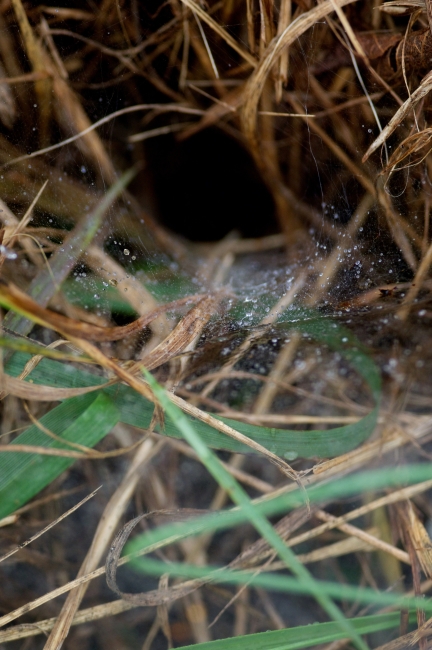 Grass with spider webs and dew drops