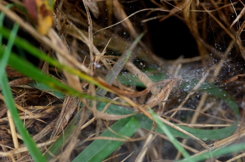 Dew drops on grass as the morning arrives at the National Conservation Training Center.