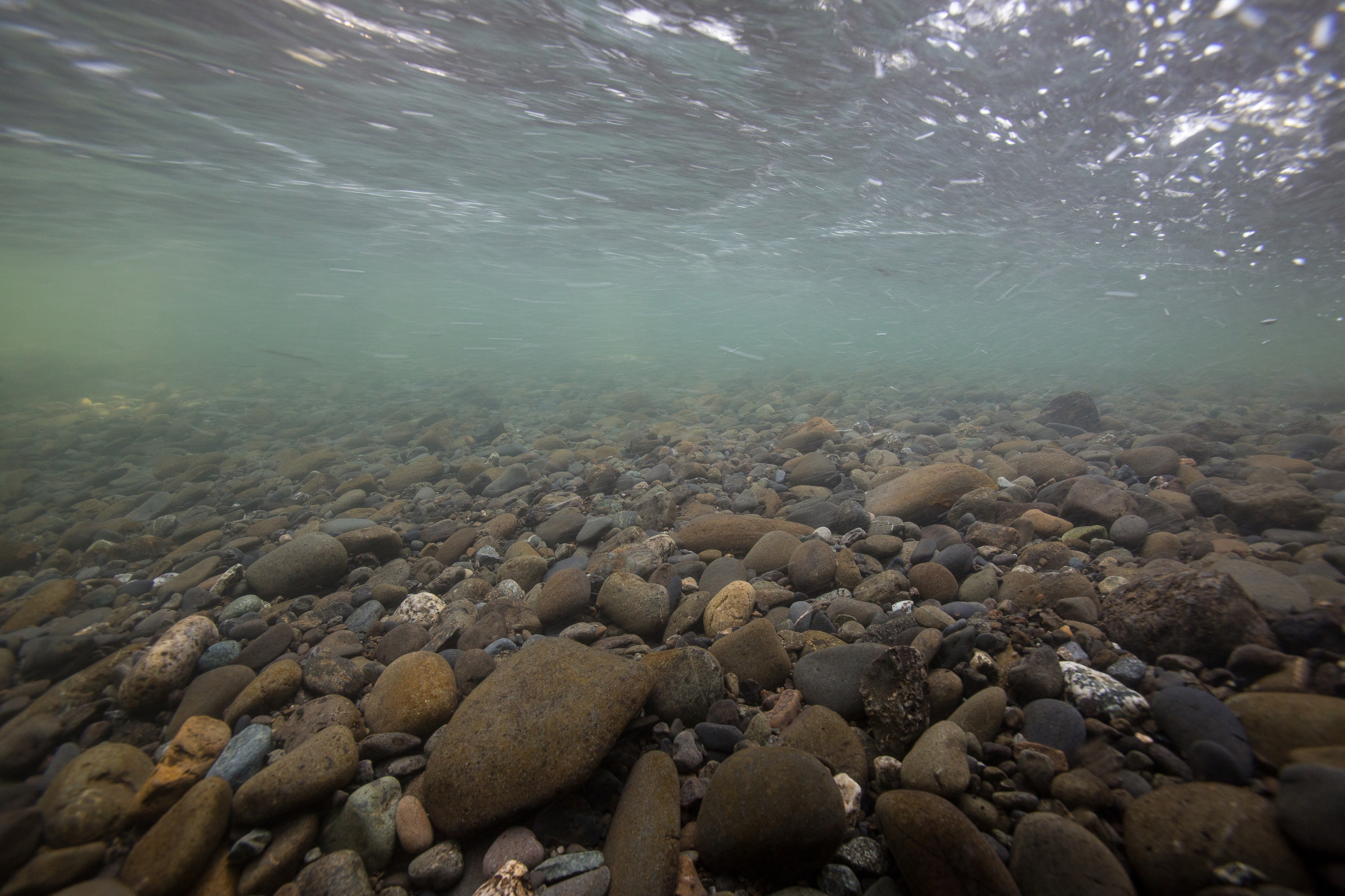 Gravel stream bottom on Ship Creek, Anchorage, Alaska.