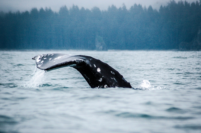 A gray whale migrates north along the California coast on its way to summer feeding grounds in the Arctic.