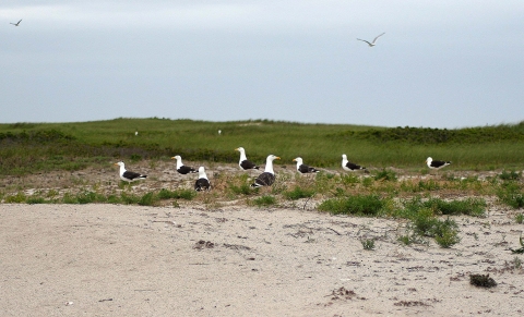 Great black-backed gulls on the beach at Monomoy National Wildlife Refuge, MA.