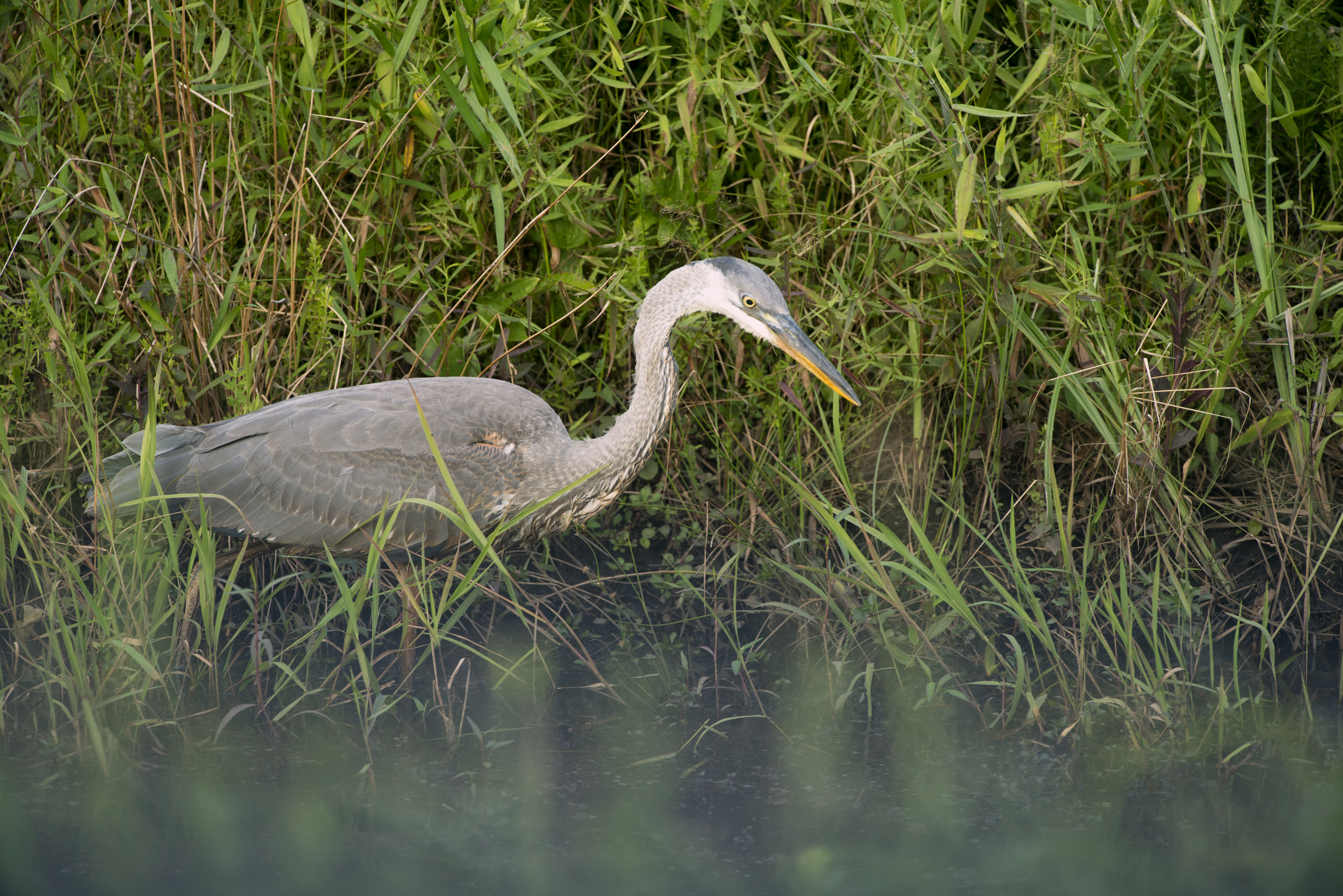 Great Blue Heron in Ditch