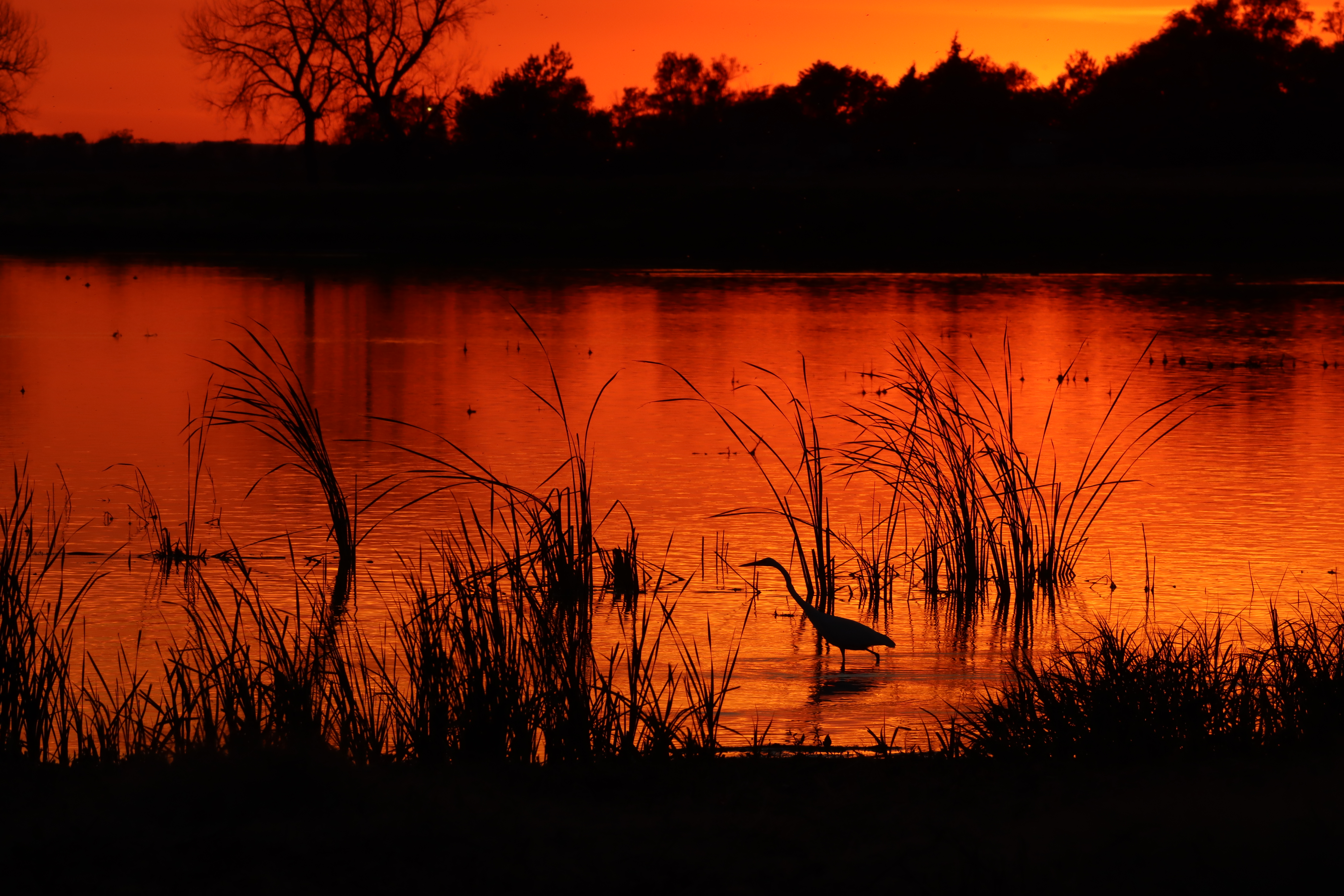 Great egret at sunset. Maga Ta-Hohpi Waterfowl Production Area