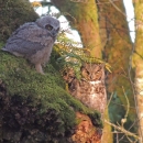 Two great horned owls – a two-month-old owlet, left, and an adult – perch at Billy Frank Jr. Nisqually National Wildlife Refuge, 60 miles south of downtown Seattle in Olympia, Washington.