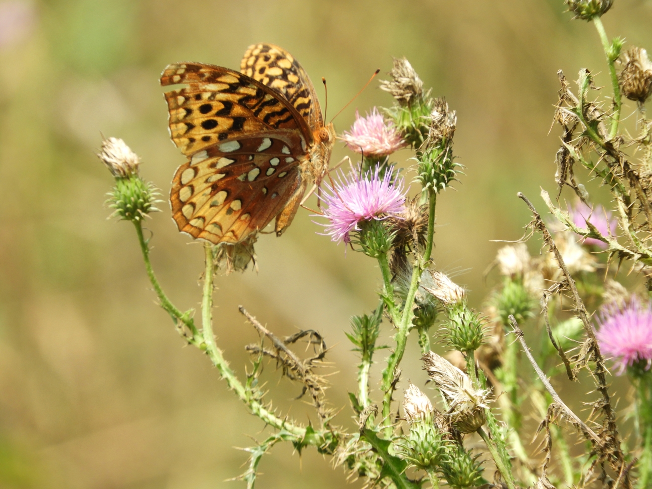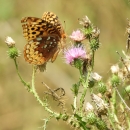 Great spangled fritillary on thistle.