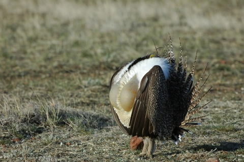 This is a close-up picture of a Greater sage-grouse at the refuge.