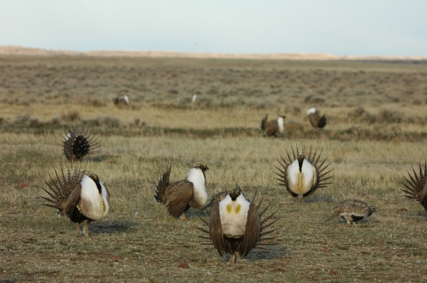 This is a picture of a field at the refuge with several Great sage-grouse.
