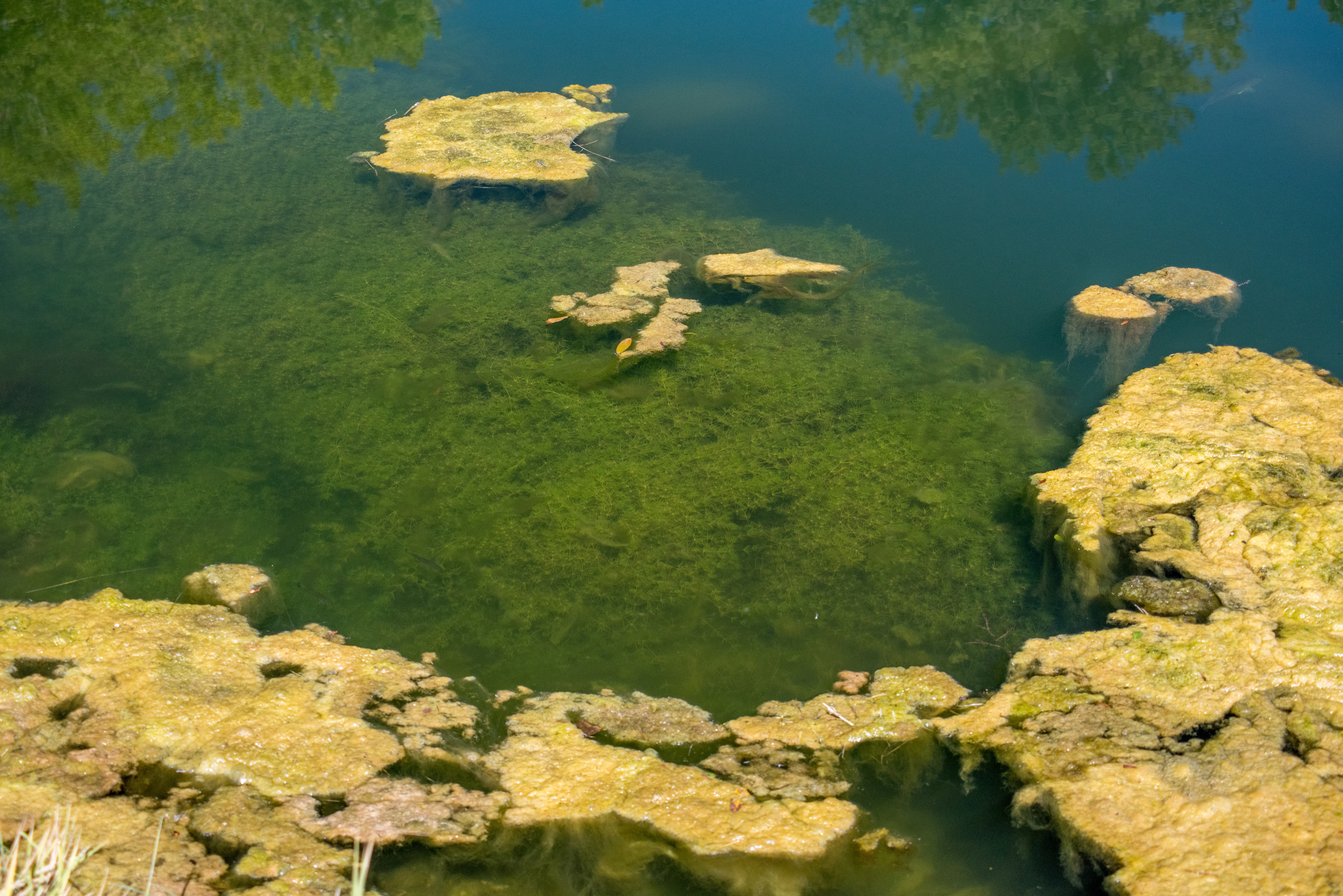 Green algae on top of water