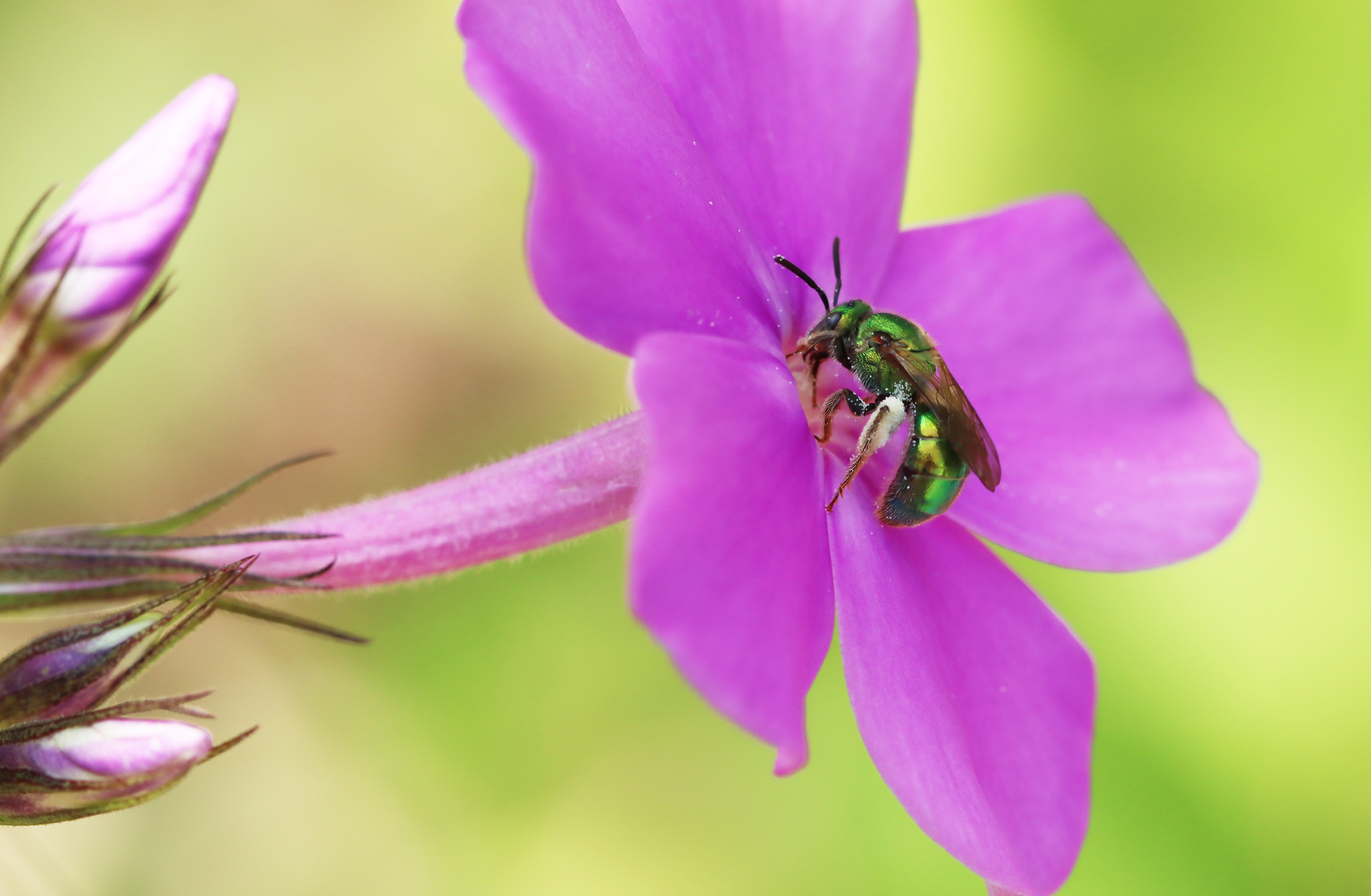 Green sweat bee on phlox paniculata