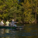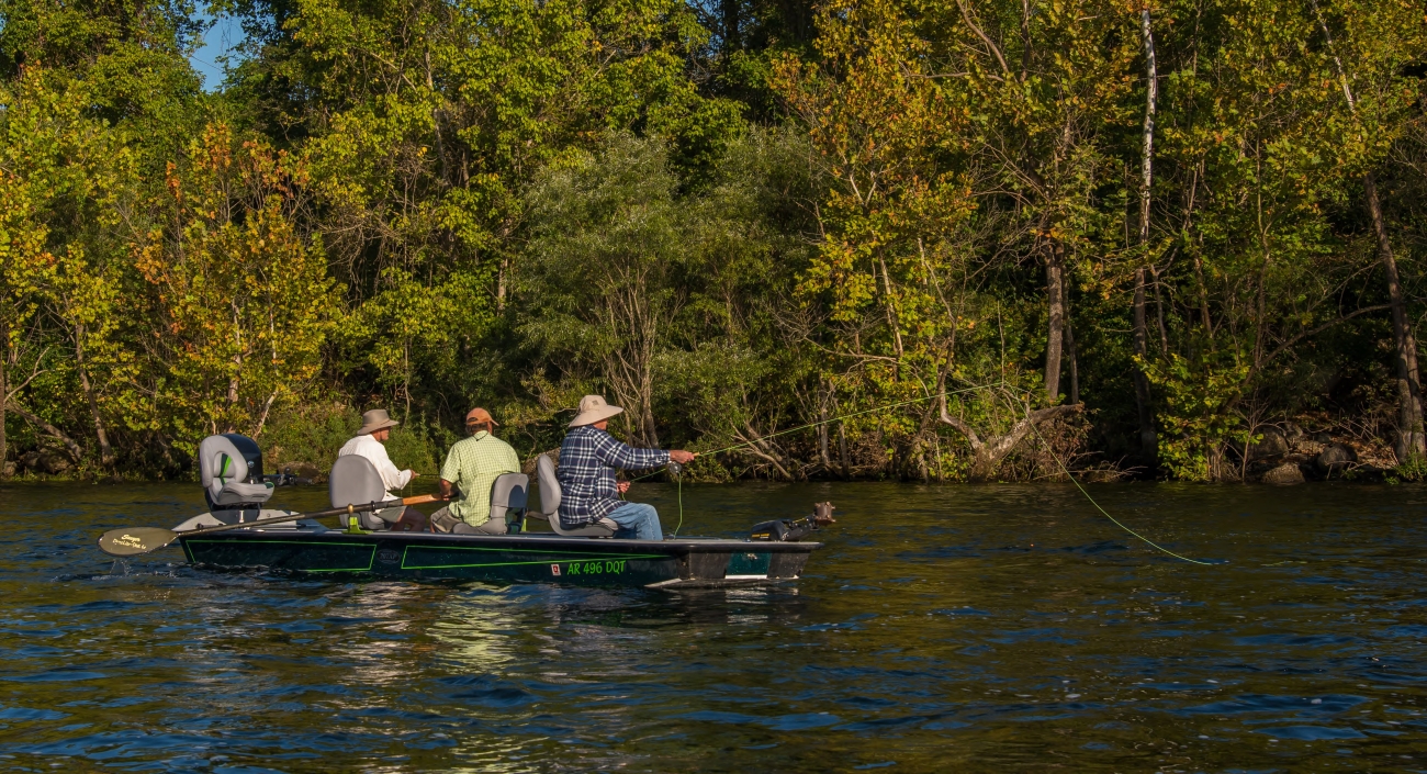 Group fishing in boat on White River.