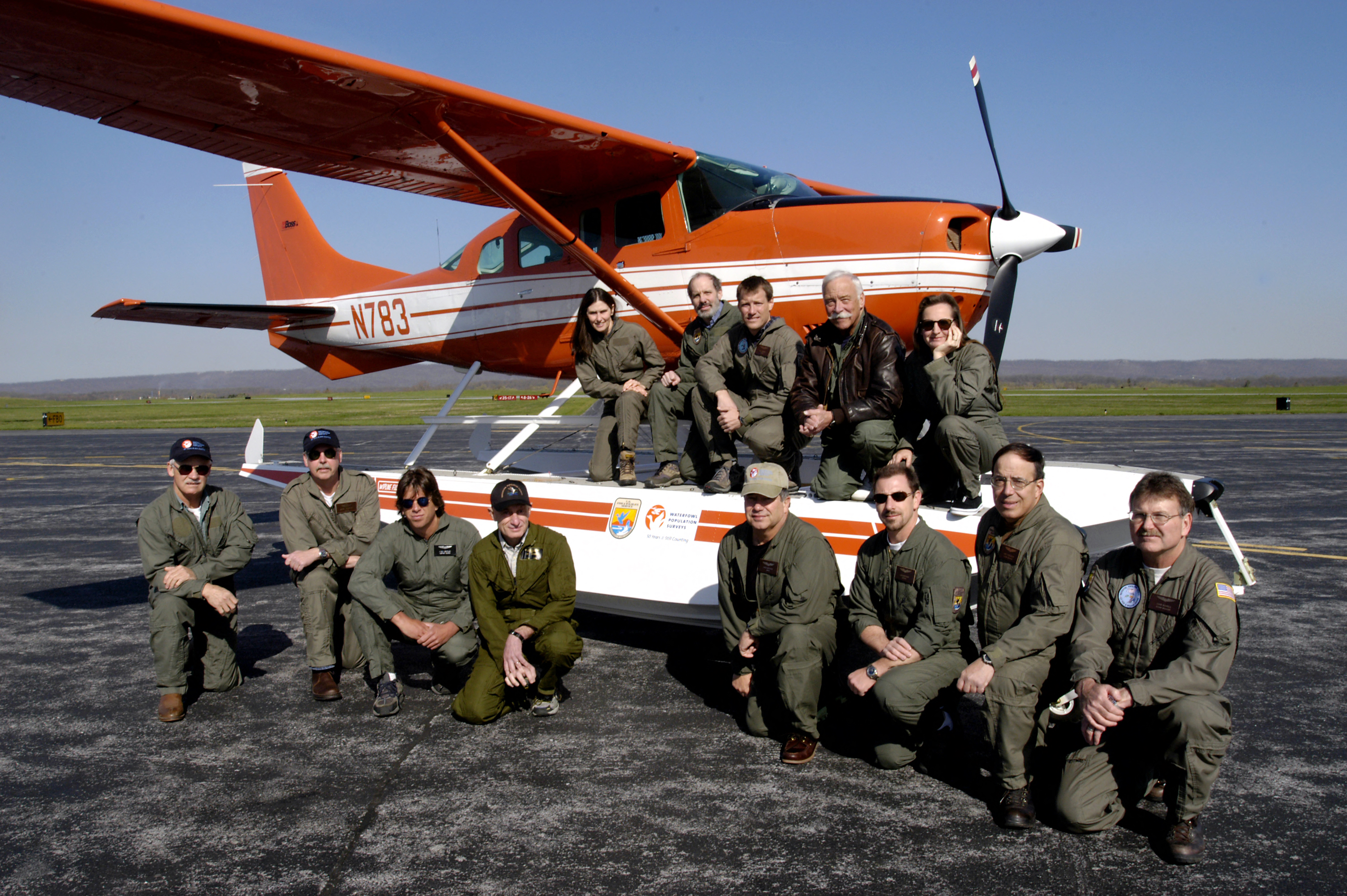 Thirteen of the U.S. Fish and Wildlife Service's pilot-biologists gathered at the Eastern West Virginia Regional Airport in Martinsburg, West Virginia. The North American Waterfowl Survey is an annual survey, continent-wide program, to survey duck, goose, and swan populations and the assess their habitat, and is considered the most reliable wildlife survey of its type in the world.