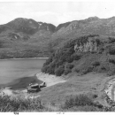 Inner Lagoon of Kaflia Bay. U.S. FWS airplane Grumman Goose NC-709 and guard cabin.