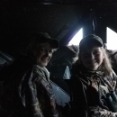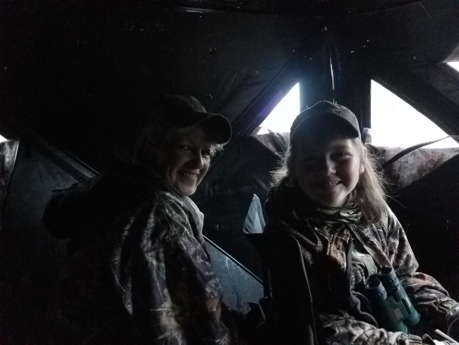 Guide Melissa Duff with Sydney Wooldridge in the blind in the early morning