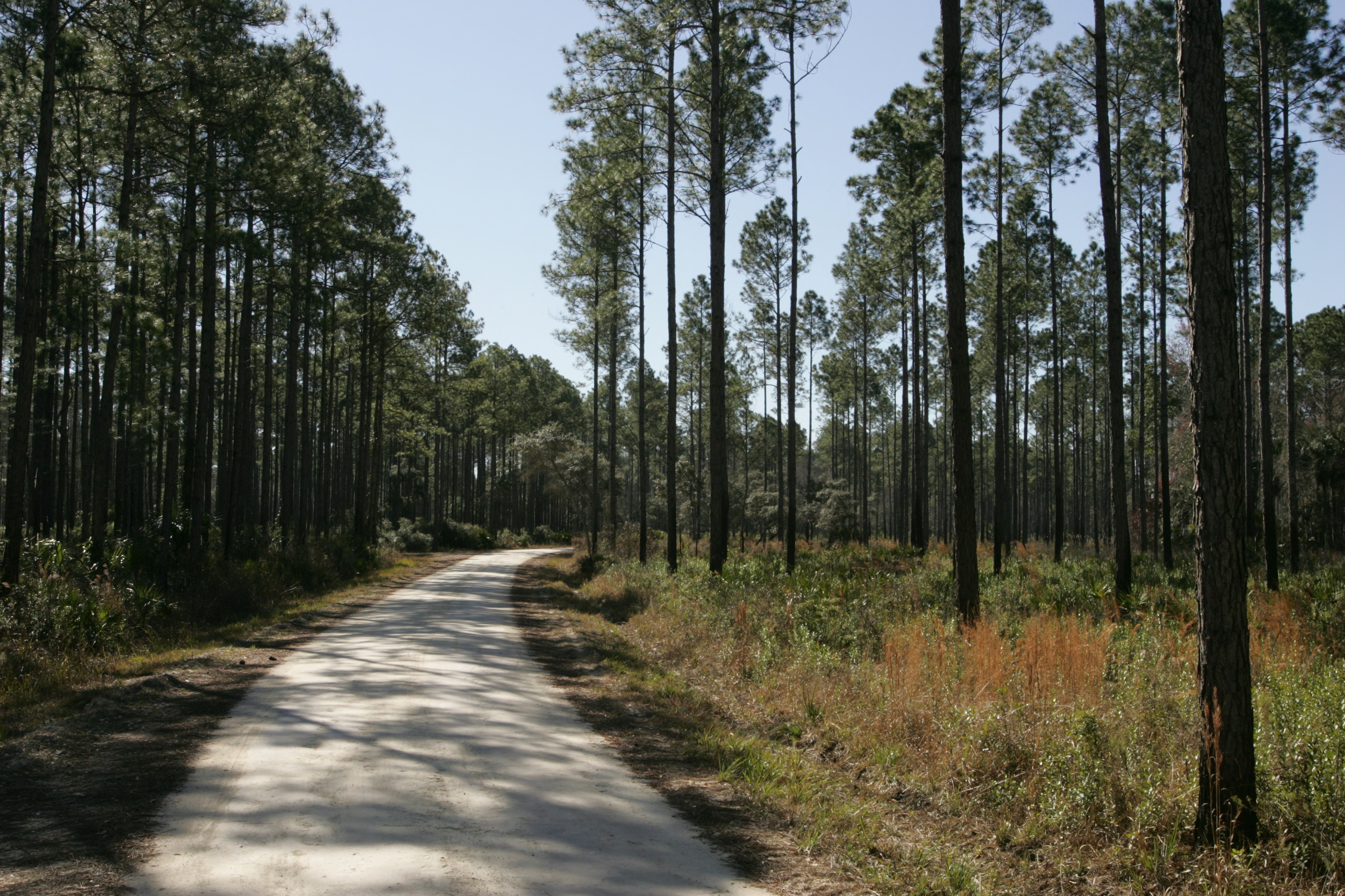 On the left, is an old pine plantation. On the right, the area has been thinned to its natural state to promote wildlife habitat.