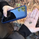 April Punsalan, a Service botanist, examines hairy rattleweed seeds.