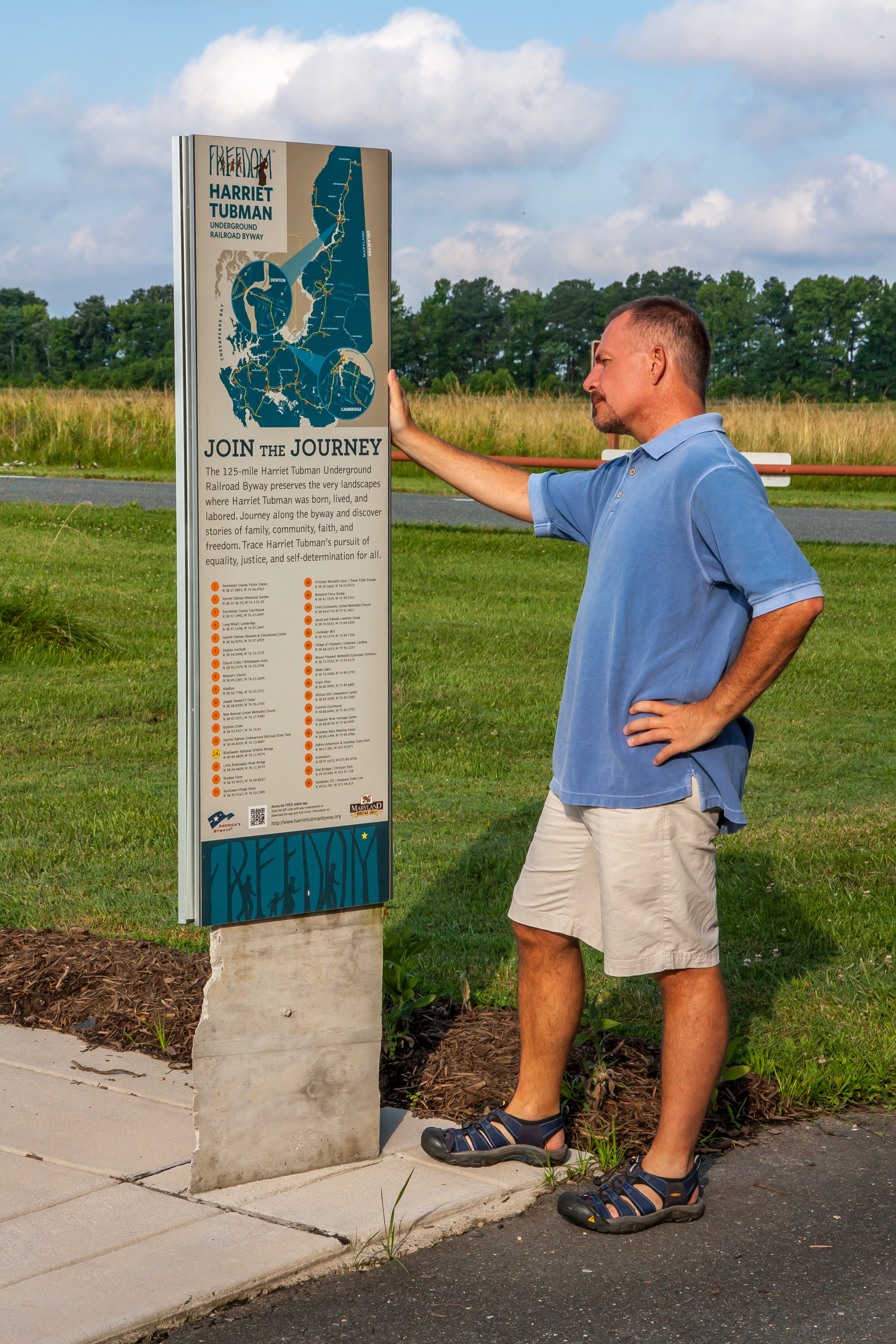 Harriet Tubman sign at Blackwater National Wildlife Refuge and with visitor