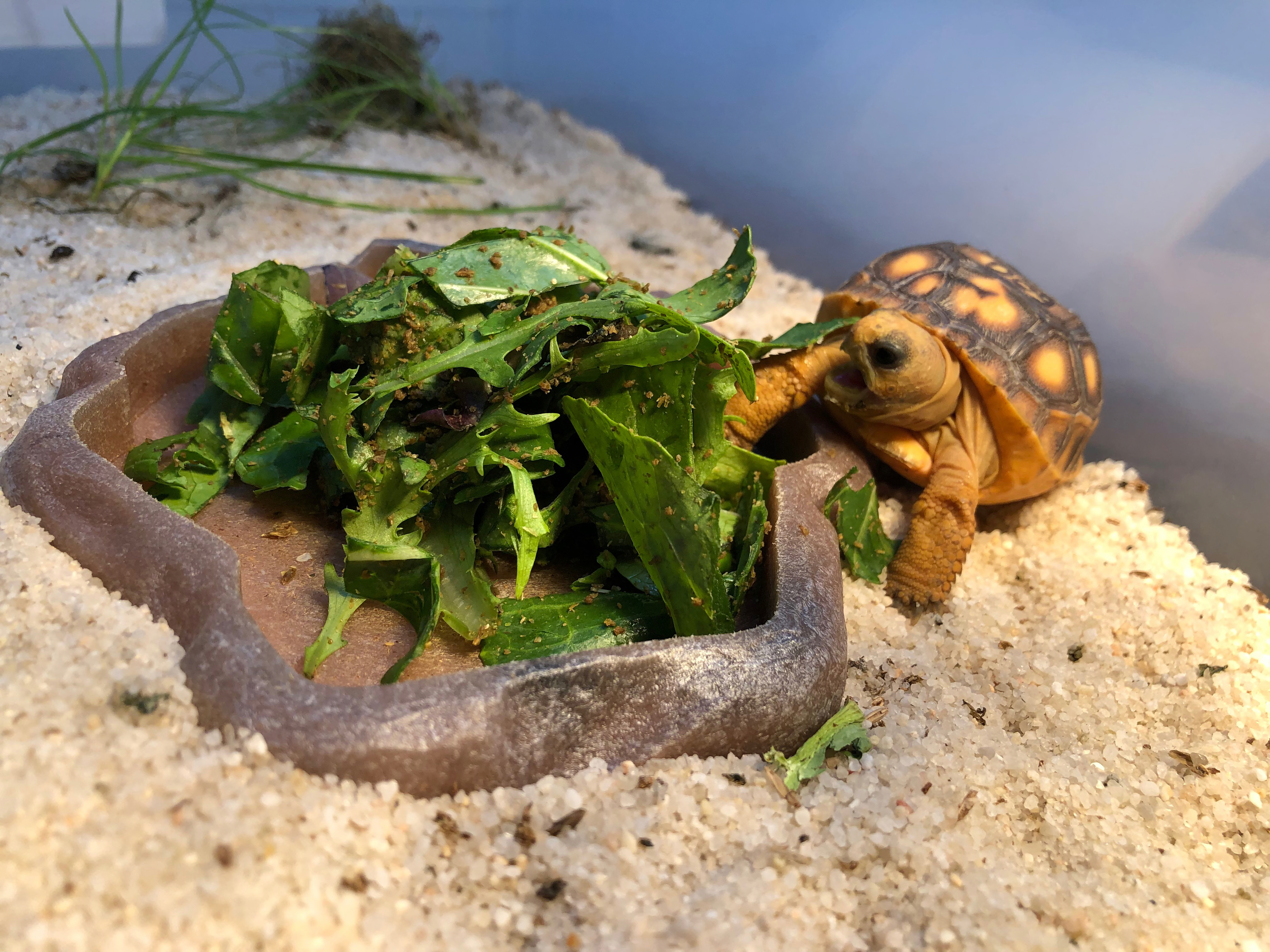 Hatchling Gopher tortoise feeding. Gopher tortoise head-starter program.