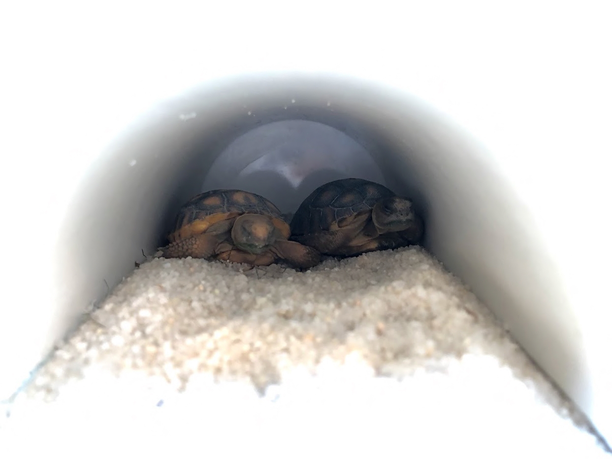 Hatchling Gopher tortoises sharing a burrow. Gopher tortoise head-starter program.