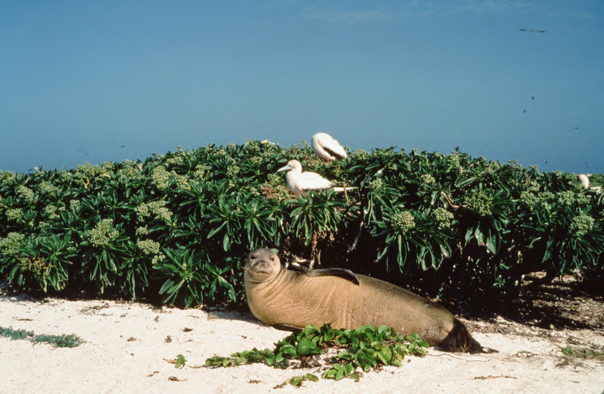 Hawaiian monk seal and Red-footed booby