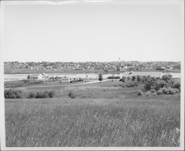 Original caption: Headquarters, Des Lacs National Wildlife Refuge, North Dakota, looking east towards the city of Kenmare. July 1948.