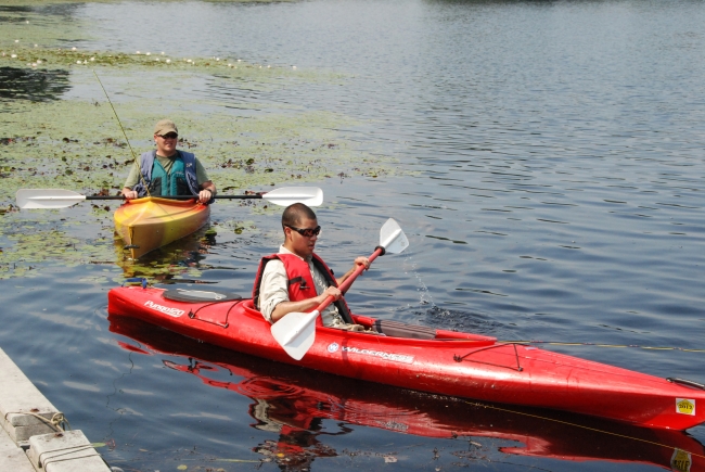 Soldiers from Walter Reed Army Medical Center and Ft. Meade explore Patuxent Research Refuge's Cash Lake as they try their skills at fly fishing as part of the Project Healing Waters Fly Fishing program.