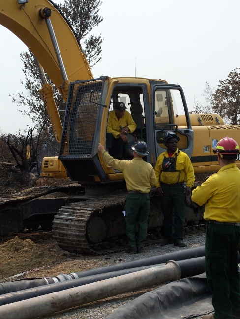 Suffolk, VA, August 2011: Heavy equipment is used to clear ditches for flooding and install high-volume pumps at Great Dismal Swamp National Wildlife Refuge in Virginia after the the Lateral West Fire.