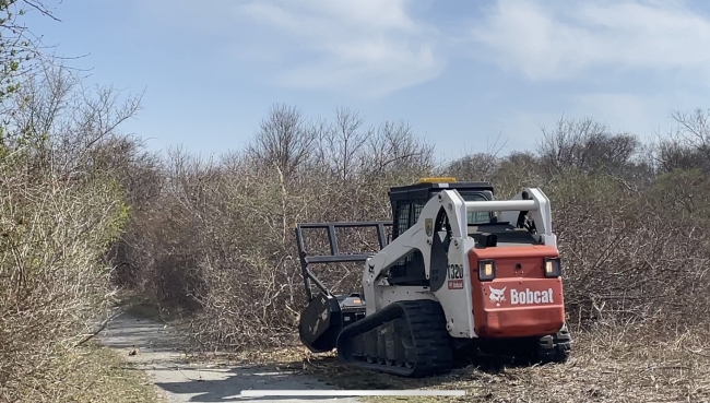 Heavy equipment in use on a trail at Sachuest Point National Wildlife Refuge in Rhode Island.