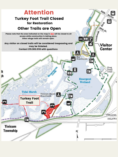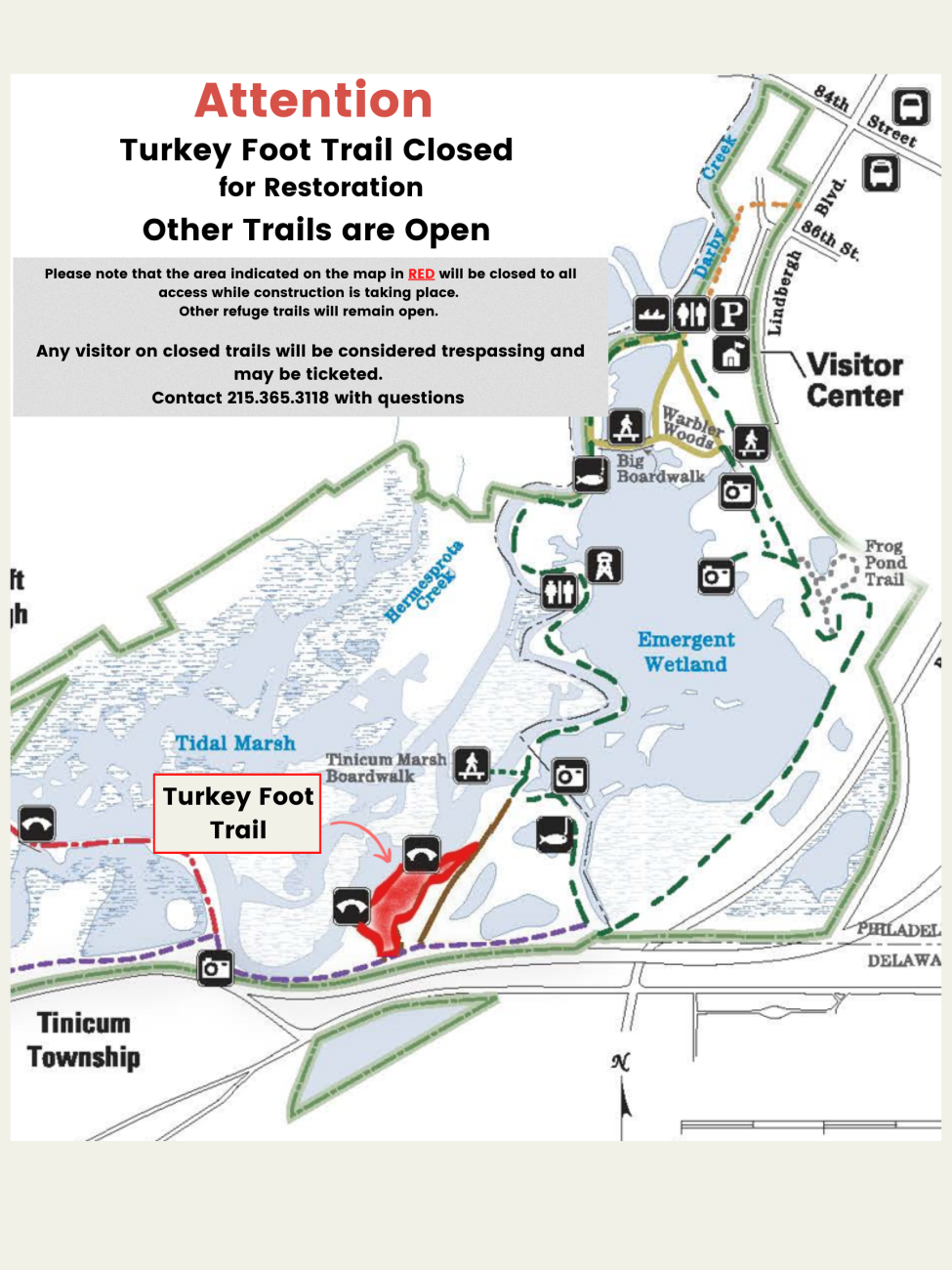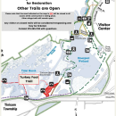 Trail map displaying the temporary Turkey Foot Trail closure in red.