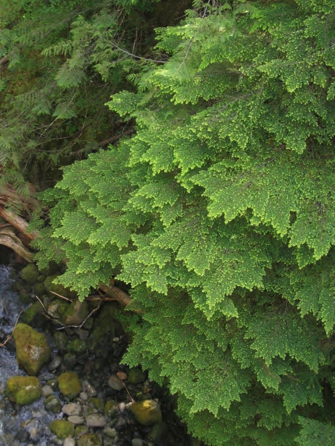 image of hemlock boughs taken at the Opal Creek Wilderness, Willamette National Forest. The Opal Creek Valley contains 50 waterfalls, five lakes, and 36 miles of hiking trails. It forms the largest intact stand of Old growth forest in the western Cascades and 500-1000 year old trees are common. The most abundant trees are Douglas-fir, Western Red cedar, and Western Hemlock. Image taken from USFWS Pacific Region Flickr page.