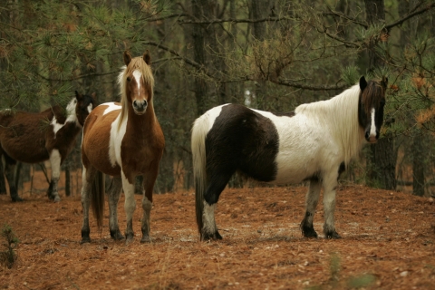 Two herds of Chincoteague ponies graze freely on Assateague Island. Legend has it that the ponies arrived on Chincoteague from a Spanish ship that had run aground during a storm in 1750. Historians believe they are descended from horses brought by settlers in the 1600’s.