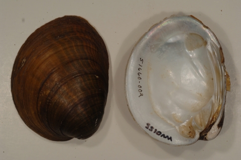 NCTC Freshwater Mussels Teaching Collection: Order: Unionoida Family: Unionidae Genus (ITIS): Obovaria Species: olivaria Williams et al.: Use to be: Location Name: Location State: WV