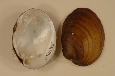 NCTC Freshwater Mussels Teaching Collection: Order: Unionoida Family: Unionidae Genus (ITIS): Obovaria Species: olivaria Williams et al.: Use to be: Location Name: Wolf River, downstream of Hwy 22 bridge, Shawano Location State: WI