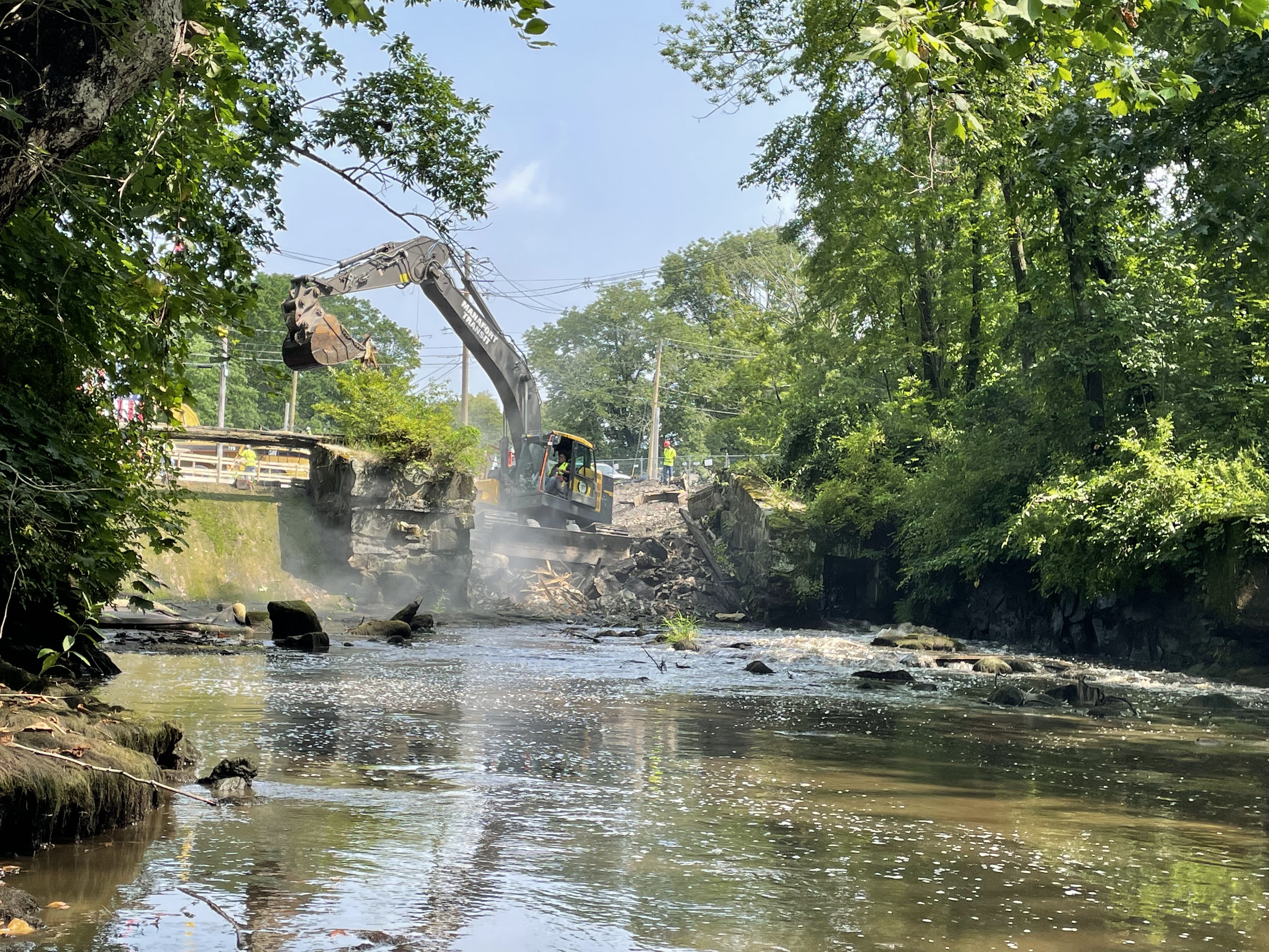 The High Street Dam being deconstructed in July of 2023.