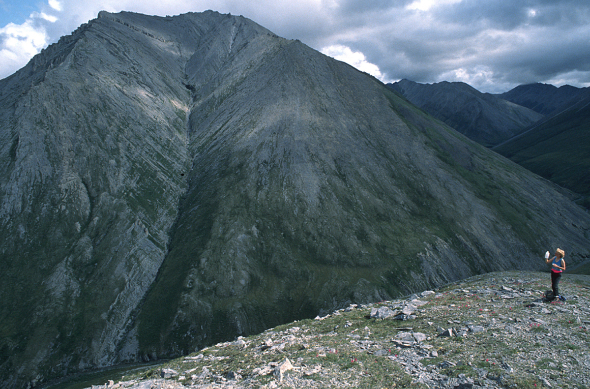 Kali Cronkhite taking a break in the Franklin Mountains within the Brooks Range.