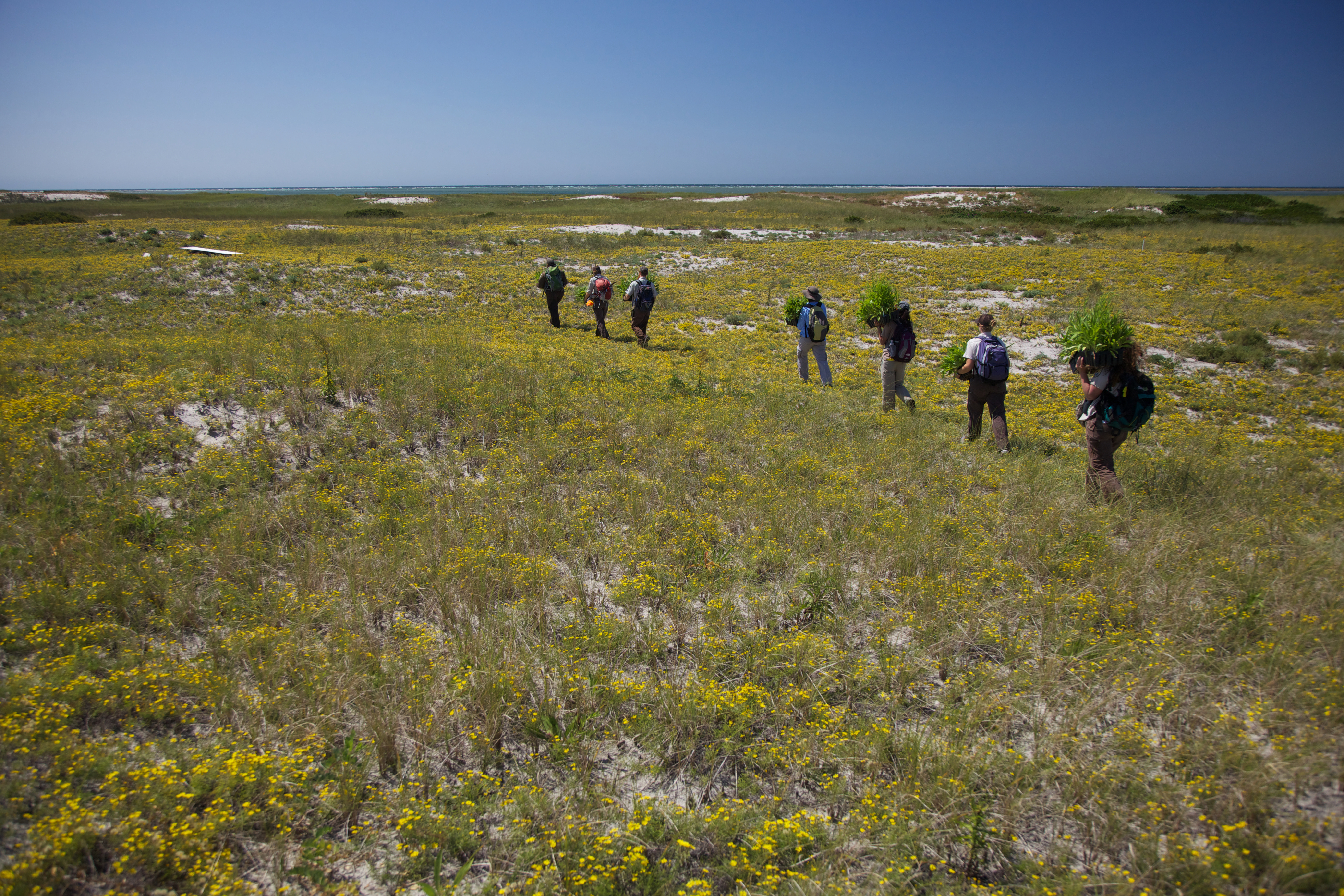 Staff are hiking to the shore to plant Seaside Goldenrod for the Roseate Tern habitat improvement