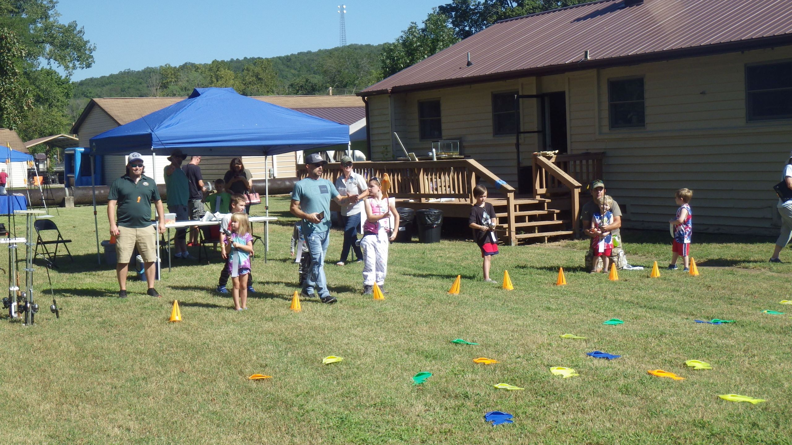 Children participating in lawn fishing at the 2023 hatchery outdoor adventure