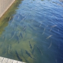 Large Chinook Swimming in the adult holding ponds at Dworshak NFH.