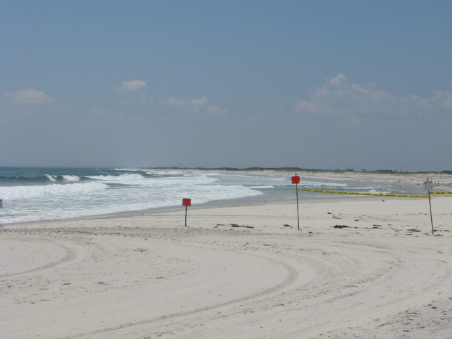 Holgate Beach in New Jersey signs to closed area containing endangered shorebirds