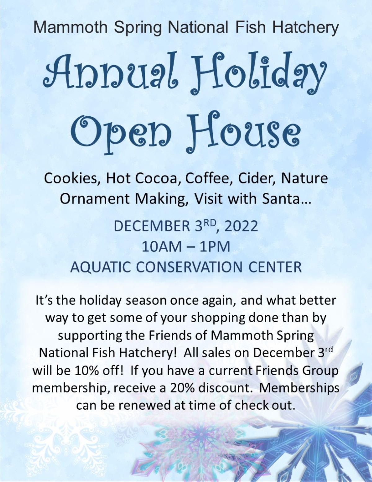Mammoth Spring National Fish Hatchery Holiday Open House Flyer