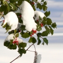 Holly berries in snow.