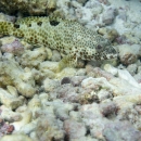 Honeycomb grouper relaxing on coral at Palmyra Atoll