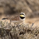 A horned lark rests on sagebrush at Seedskadee National Wildlife Refuge in Wyoming.