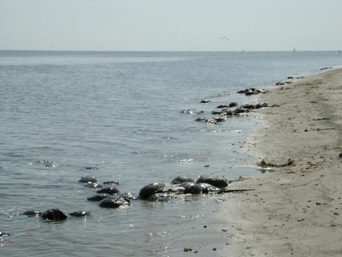 Horseshoe crabs along beach