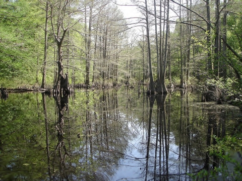 Cypress trees in Horseshoe Lake at Little River National Wildlife Refuge. Hardwoods;